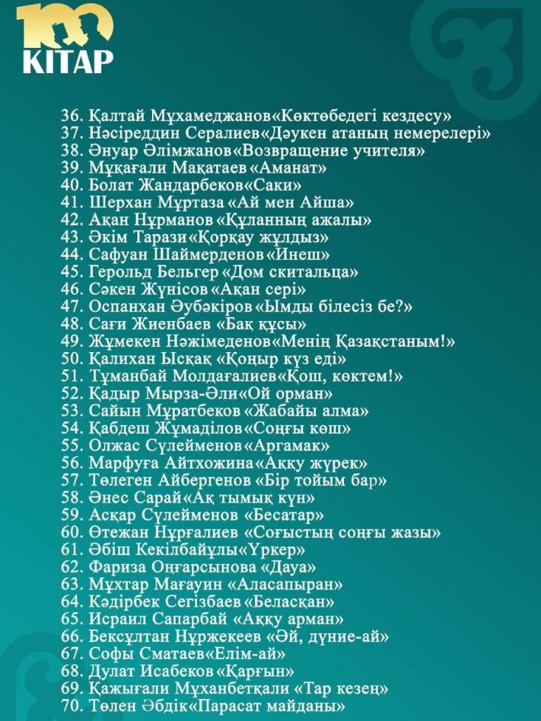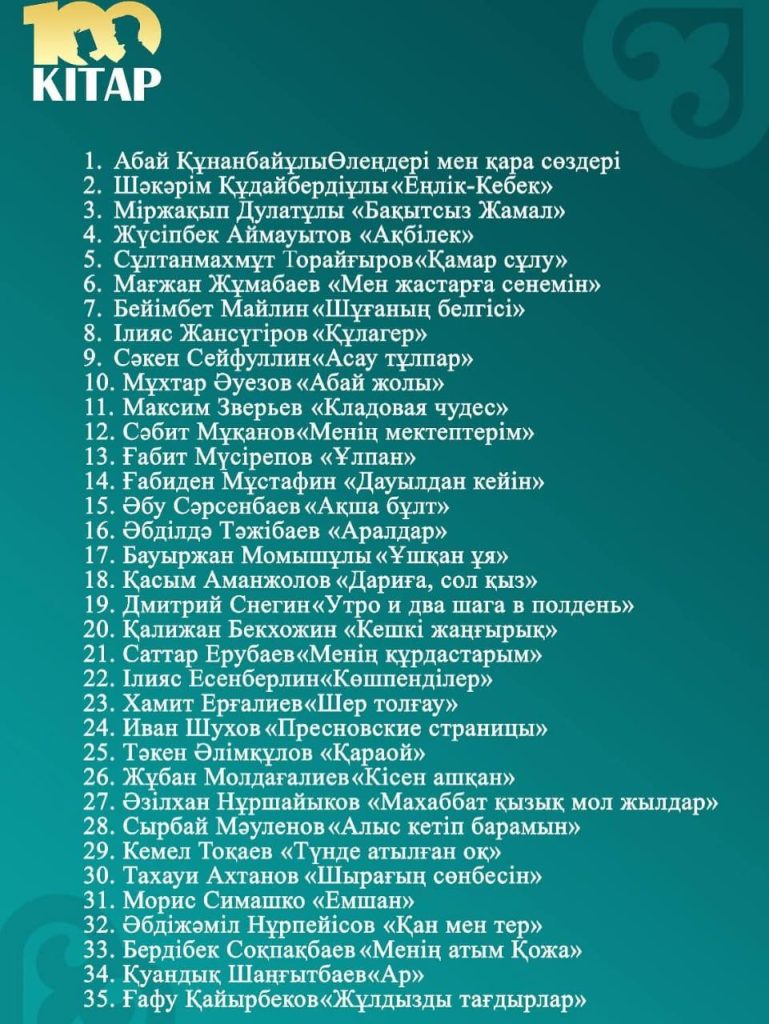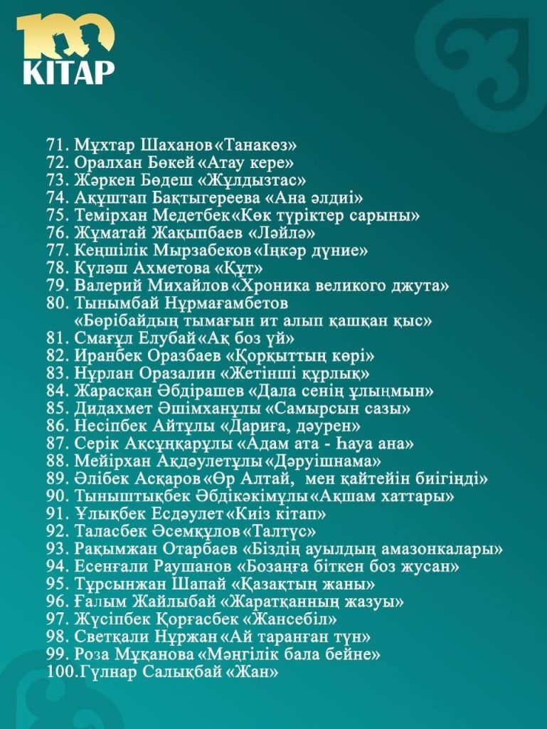 «100 кітап» ұлттық сауалнамасы өз мәресіне жетіп, еліміздің әдебиет сүйер қауымының таңдауы бойынша ең үздік 100 туынды анықталды.