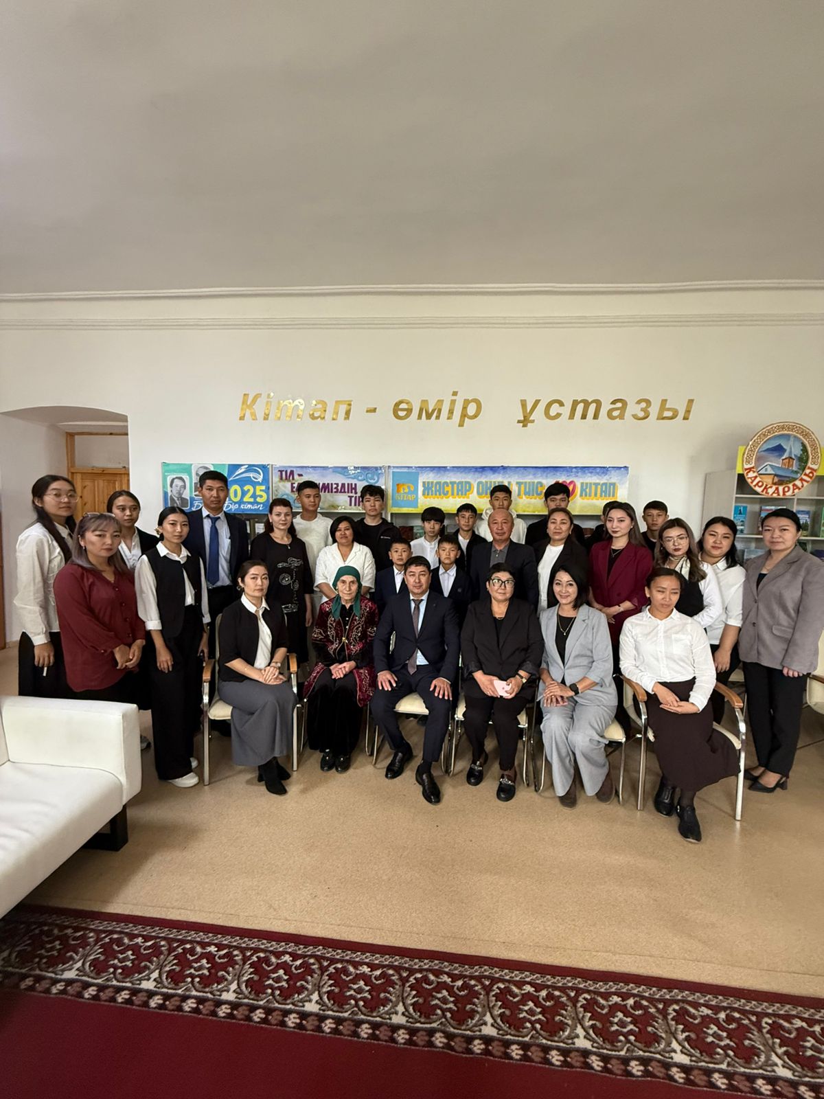 Шараға Қарқаралы аудан әкімінің орынбасары Ілияш Нұржан Ағыбайұлы, аудандық ішкі саясат бөлімінің басшысы Бекзада Думанұлы, Қарқаралы қаласының тұрғындары, тіл жанашырлары Цагаева Яха Магамедовна, Девевье Карина Михаиловна және Қарқаралы тарихи- өлкетану музейінің қызметкерлері, Мыңжасар Әдікенов атындағы Қарқаралы ауылшаруашылық колледжінің ұстаздары мен студенттері, Мәди Бәпиұлы атындағы №44 мектеп интернатының кітапханашысы мен Абай Құнанбаевтың 180 жылдық мерейтойына арналған «100 өлең» облыстық байқауының жүлделі 3 орын иегері, 11сынып оқушысы Төлеген Балым, кітапхана жанынан құрылған «Қаламгер» қызығушылық клубының мүшелері, кітапхананың тұрақты оқырмандары қатысты. Нұржан Ағыбайұлы тіл мерекесінің маңыздылығына тоқталып, құттықтау сөз сөйледі. Шара барысында «Қаламгер» қызығушылар клубының мүшелері Серік Аяулым, Төлеген Балым, Оспанова Фатима, Мұқатай Аидалар тіл туралы өлеңдер оқыса, Қарқаралы қаласының «Өнер» мектебінің дәстүрлі ән сыныбының ұстазы Үйсінбаев Бақытжан Абайдың әнін шырқады. Тіл жанашырлары Яха апай мен Карина өмір тарихтарынан сыр шертіп, жылы лебіздерін білдірді. Тіліміз тұғырлы, еліміз ғұмырлы болсын!