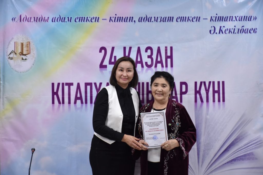 Осы мерекеге орай бүгін кітапханашыларды марапаттау рәсімі өткізілді. Өз кәсібіне адал, мәдениет пен ағартушылық жолында еңбек етіп жүрген кітапханашылардың еңбегі лайықты бағаланды.